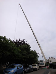 A Terex utilizou o guindaste Challenger para levantar um telhado de aproximadamente 300 kg e tirá-lo de um pavilhão utilizado para churrasco da creche St. Kilian Catholic.