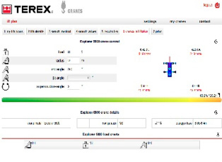 Após registrar-se como usuário e à sua empresa, o cliente pode informar ao sistema que guindaste Terex pretende utilizar para determinado serviço. Então, informa a carga, a altura e o raio de elevação necessários para a aplicação pretendida. Pode-se imprimir uma cópia do plano de elevação da operação.