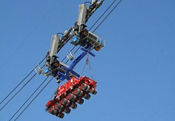 Para construir uma galeria no interior da montanha foi preciso abrir um túnel de 4 km de extensão e 8 m de diâmetro, operação na qual foi utilizada uma TBM de 160 m e 1.500 t produzida pela Aker Wirth. Para acessar o local, entretanto, a TBM teve de ser desmontada e seus componentes – alguns com peso acima de 85 t – embarcados na plataforma SPMT da Scheuerle para serem levados até o ponto de carregamento do teleférico.